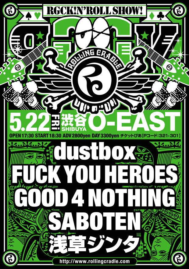 3月1日大阪で開催しましたRGCK!N’ ROLL SHOW!〈ゴックンロールショウ!〉 関東地方の皆様お待たせしました!東京開催決定!! 東京ゴックンも外す訳ないでしょー 場所はもちろん渋谷O-EAST!! 今回も説明不要!休む暇無しの全5バンド!! みんなで騒いで最高の一日にしましょう!!